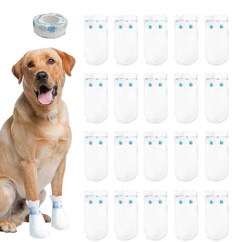 20 PCS Dog Boots for Injured Paws Waterproof, Dog Socks Paws Stop Licking, Disposable Dog Shoes, for Dogs Paw Bandage Cover Indoor & Outdoor Walking(M)
