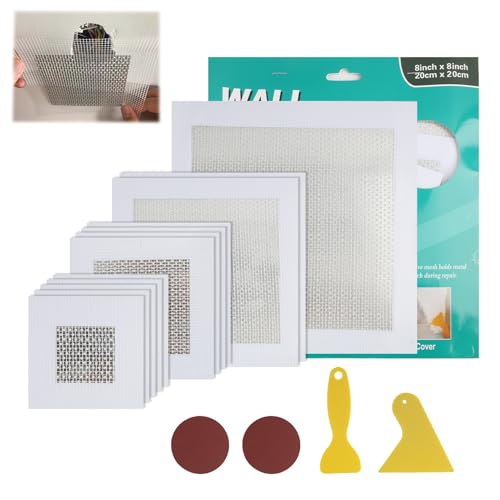 Eddrfy 14Pcs Wall Repair Patch Kit, 2/4/6/8 Inch Plasterboard Patches, Self-Adhesive Drywall Hole Repair Kit with Scraper and Sandpaper, Fiberglass Mesh Wall Mending Patch for Broken Walls