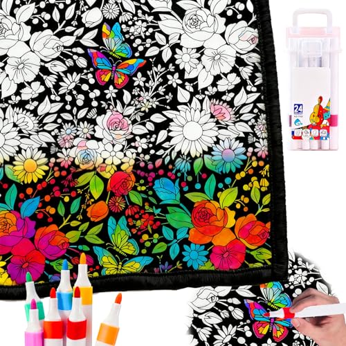DIY Colouring Blanket, Coloring Blanket for Adults, Colour Your Own Blankets Adults with 24 Markers, Colour in Blankets, Cozy Kids Bedroom Sofa Decor, Creative Personalized Cozy Home Gift (A)