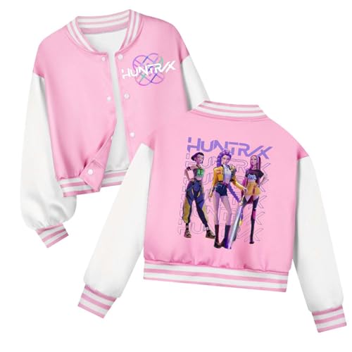 K-kpop D-Demon H-Hunters for Girls Boys Baseball Jacket Long Sleeve Oversized Sweatshirts with Pockets Anime Graphic Bomber Jacket Streetwear for School Students Hoodies Y2k Pullover Sweatshirt