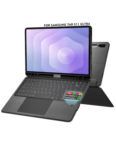 Doohoeek Bluetooth Keyboard Case w/LCD Screen Display for Samsung Galaxy Tab S11 Ultra 14.6 Inches 2025(SM-X930/X936), Backlit Wireless Type Folio with Detachable Trackpad & 150° Adjustable, Black