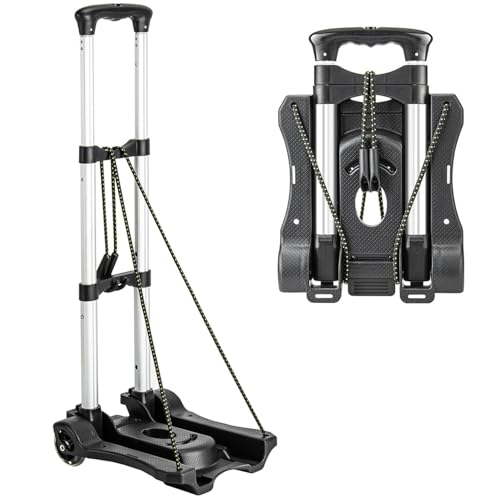 Mini Folding Hand Truck Trolley 40kg Capacity – Lightweight 1.2kg Compact Luggage Cart with Adjustable Handle, Plastic Nose Plate 27x22cm + 2 Bungee Cords – Foldable & Portable